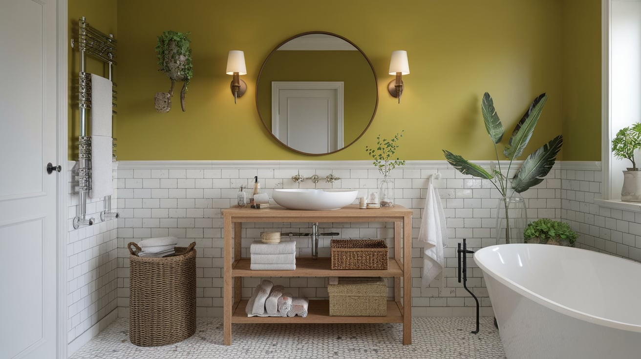 Instead of traditional towel bars, try wall-mounted baskets or wooden crates. They give your bathroom a casual and creative look while keeping towels easy to grab.