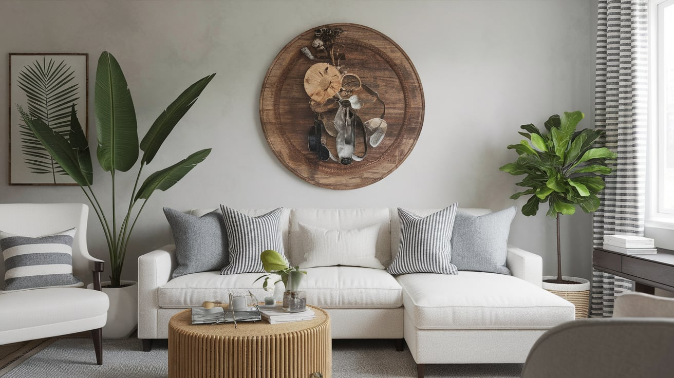 Try a large round mirror above a fireplace or a few smaller mirrors arranged in a row along a hallway. Look for interesting frames — wood, metal, or vintage styles — that match your room’s look.